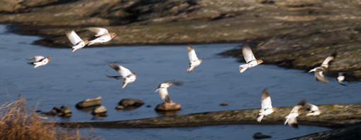 Gnistrande kallt och stilla, kanske den vackraste höstmorgonen på länge. En flock snösparvar, iklädda ljusa vinterkläder, söker efter mat på klapperstenfälten vid Hyppelns västra strand. Varje prång och krypin undersöks metodiskt för att hitta det som dämpar och lindrar hungern.