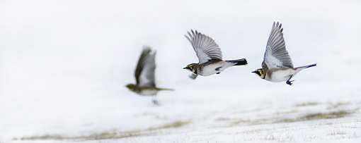 Det är vinter på morgonen och vår på eftermiddagen. Årstiderna glider in i varandra och förvirrar både klädvalet och promenaden till Torslandaviken. Området hyser sedan början av november förra året en grupp berglärkor. De vackra fåglarna är perfekt anpassade till snön och det bleka och tobaksbruna fjolårsgräset.