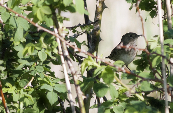 Nu på morgonen cyklar jag dit igen. Det är enkelt. Trampningen alltså. Fotograferingen vållar däremot bekymmer, den lilla sångaren är knappast en linslus. Får vänta en god stund innan jag får den på bild.