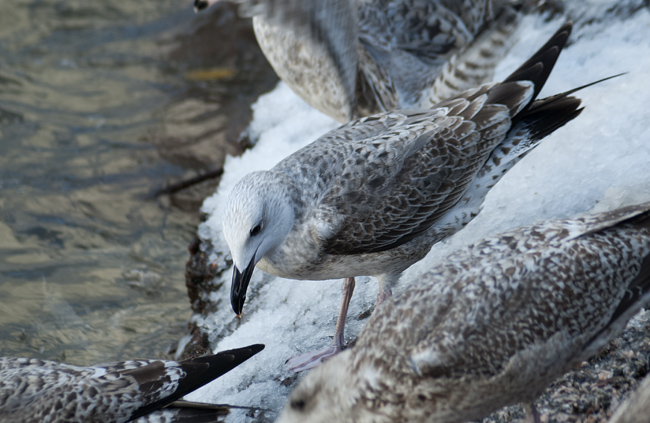 Sveper med handkikaren. På litet lägre höjd en pilgrimsfalk som jäktar uppströms. Nervklena fågelmedborgare bör ge sig iväg från området.