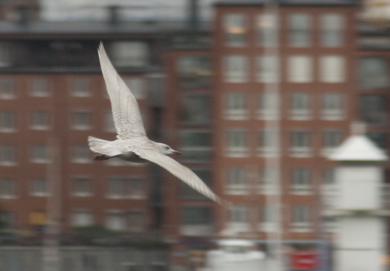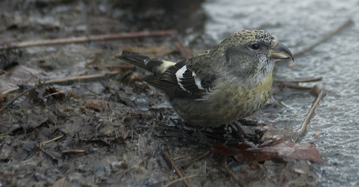 Kompakt gråhet har tagit över landskapet. Tystnaden inte lika massiv. Vid Mölndals sjukhus sjunger några bändelkorsnäbbar.