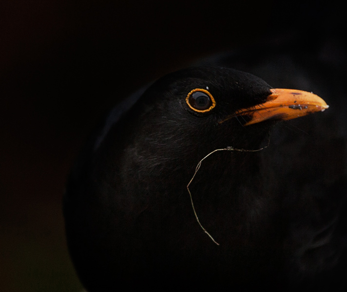Fotograferar koltrastar genom köksfönstret. Tänker på Hans Gedda. På en bild av Margaretha Krook.