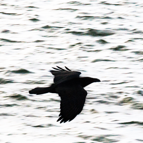 Möter en korp. Bråttom.