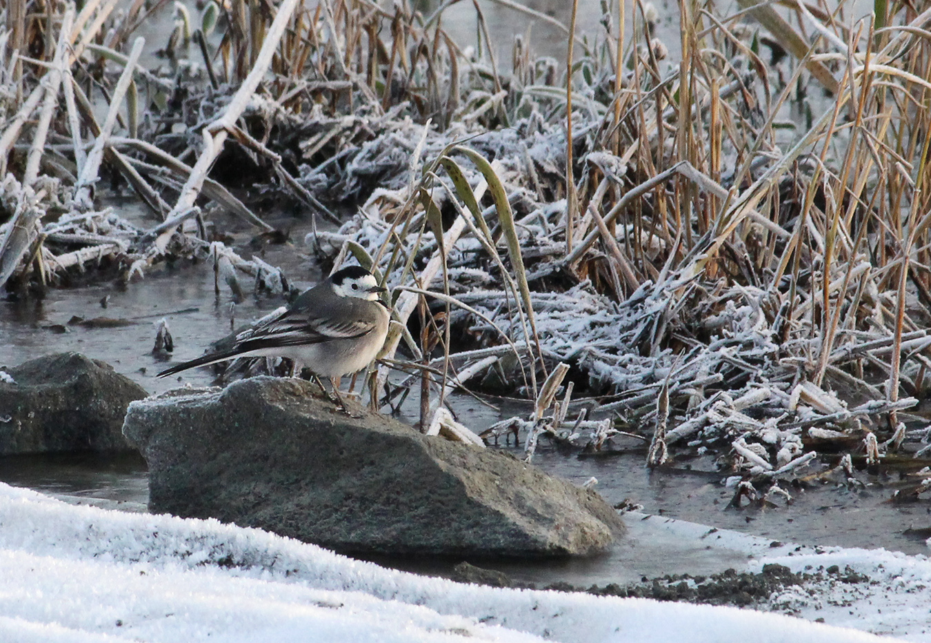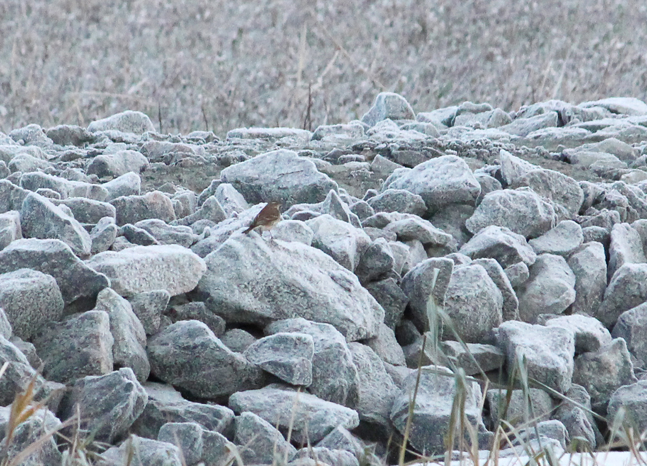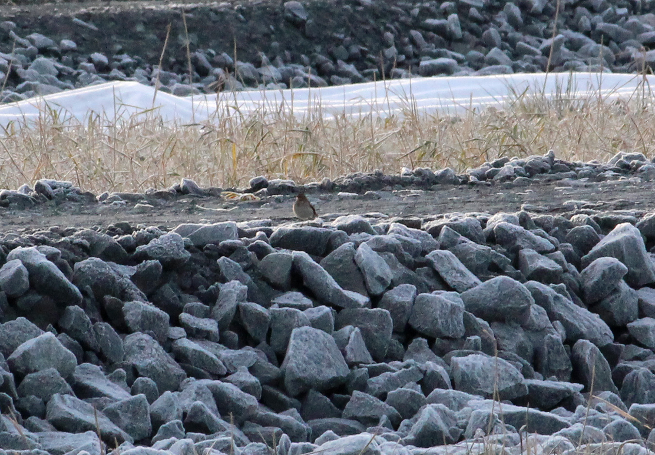 När jag så äntligen tar mig ut möter jag en grå och disig novembermorgon. Men det är milt så vantarna åker tillbaka i ryggsäcken. Efter cirka 10 minuters promenad är jag framme vid Torslandaviken. Några ängspiplärkor drar rastlöst omkring på mudderdammen medan en skärpiplärka födosöker bland stenarna utmed strandlinjen.