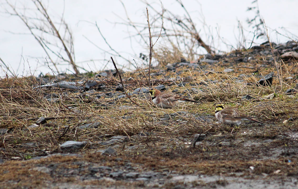 På hemväg från arbetet kliver jag som vanligt av bussen vid Amhults resecentrum och promenerar sista biten hem till Sandvik. En plats som ingår i rutten hem är Torslanda golfbana och jag hinner nätt och jämt upp på det kortklippta gräset förrän jag får syn på berglärkorna! Jajamän, de har klarat livhanken och tagit sig igenom den vargavinter som nu töat bort men som envist bet sig fast de senaste veckorna.