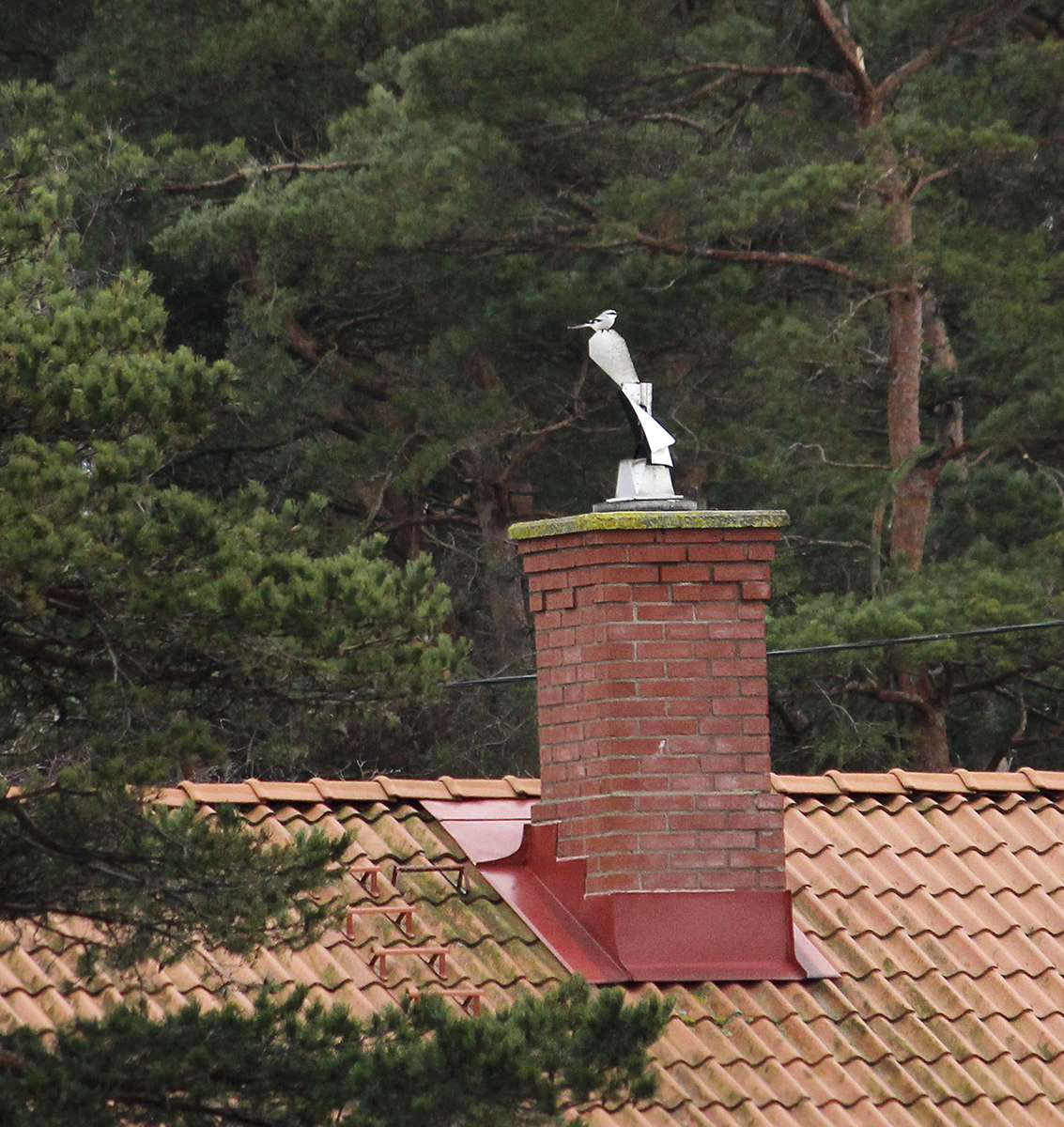Och vid Torslandaviken (östra delen av Risholmsudden) träffar jag på de två berglärkorna i busvädret! Dessa älskade berglärkor, ja ja lite högtravande och flörtigt men det är så jag känner för dem. Vid småbåtshamnen spanar en varfågel från en vindflöjel som sitter på en skorsten.