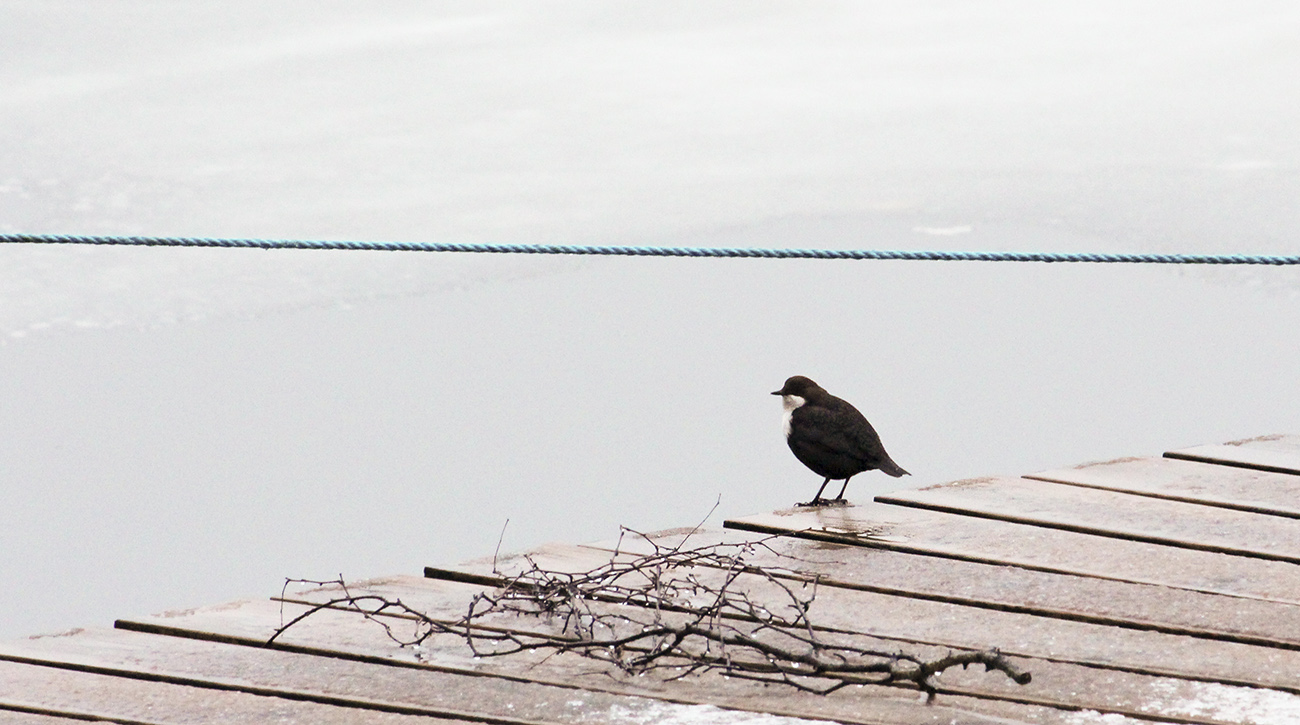 Tog en lunchpromenad till bland annat Arketjärn vid Mölnlycke fabriker i dag. Strömstaren lyfte livsanden ordentligt denna disiga och gråtrista januaridag när man nås av beskedet att David Bowie gått bort.