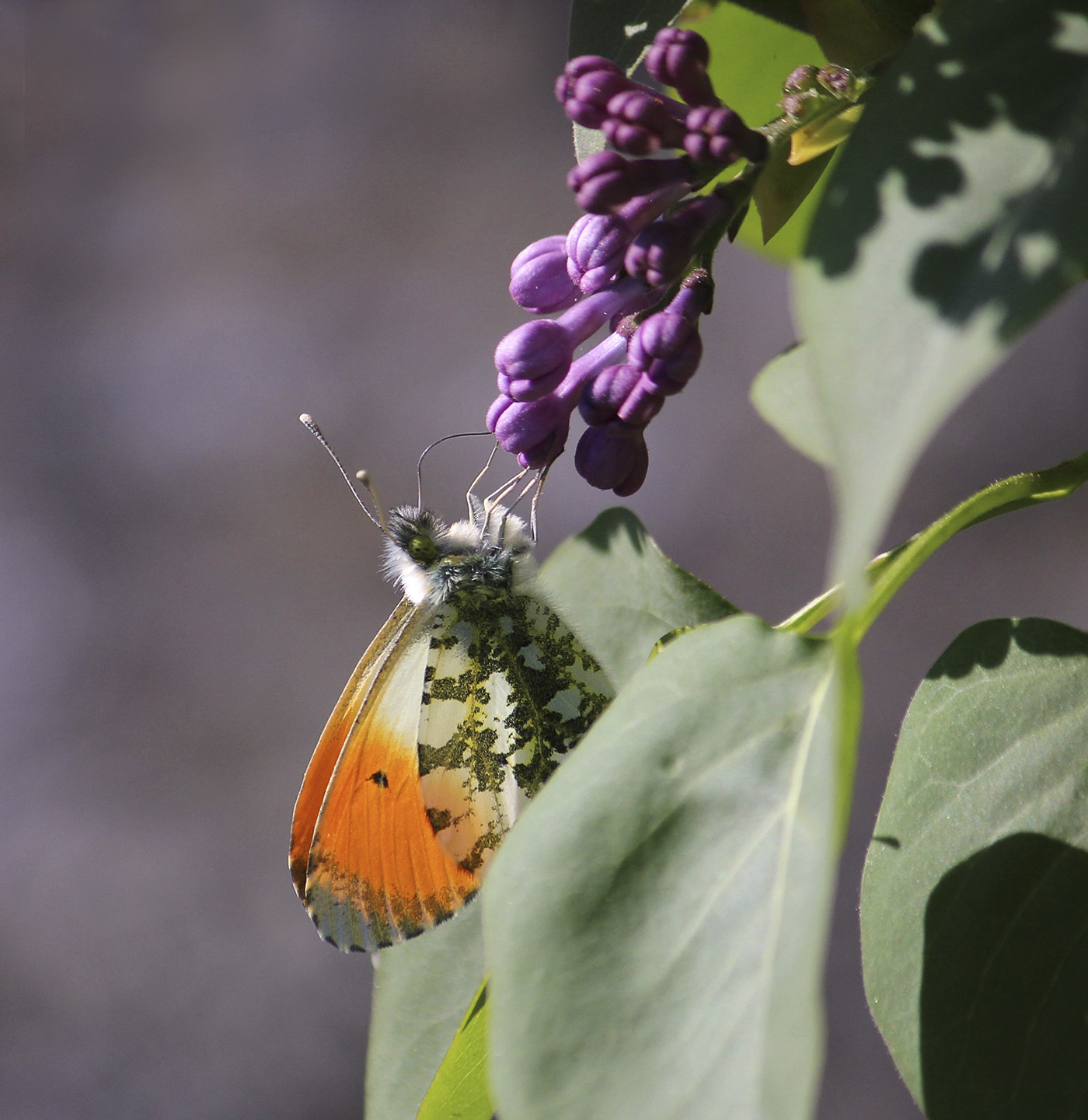 När jag kom hem från arbetet idag såg jag årets första aurorafjäril (en hane) flyga i trädgården! Hjärtat rusade av glädje över den bedövande fina men ack så rastlösa varelsen.