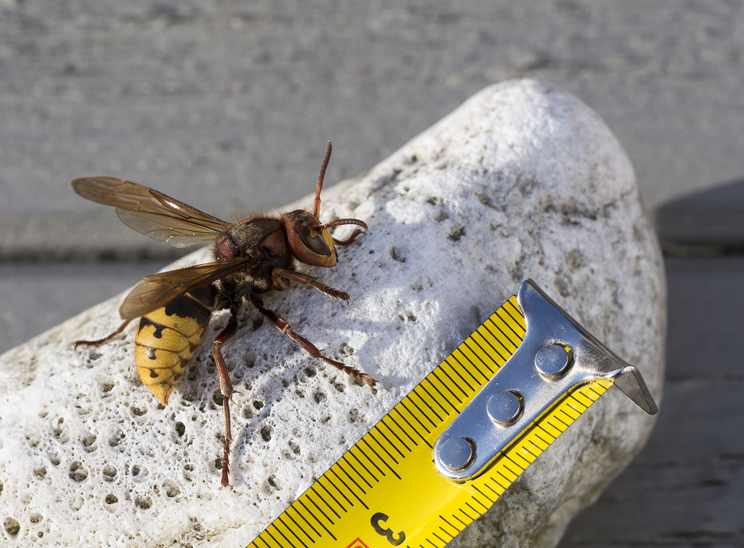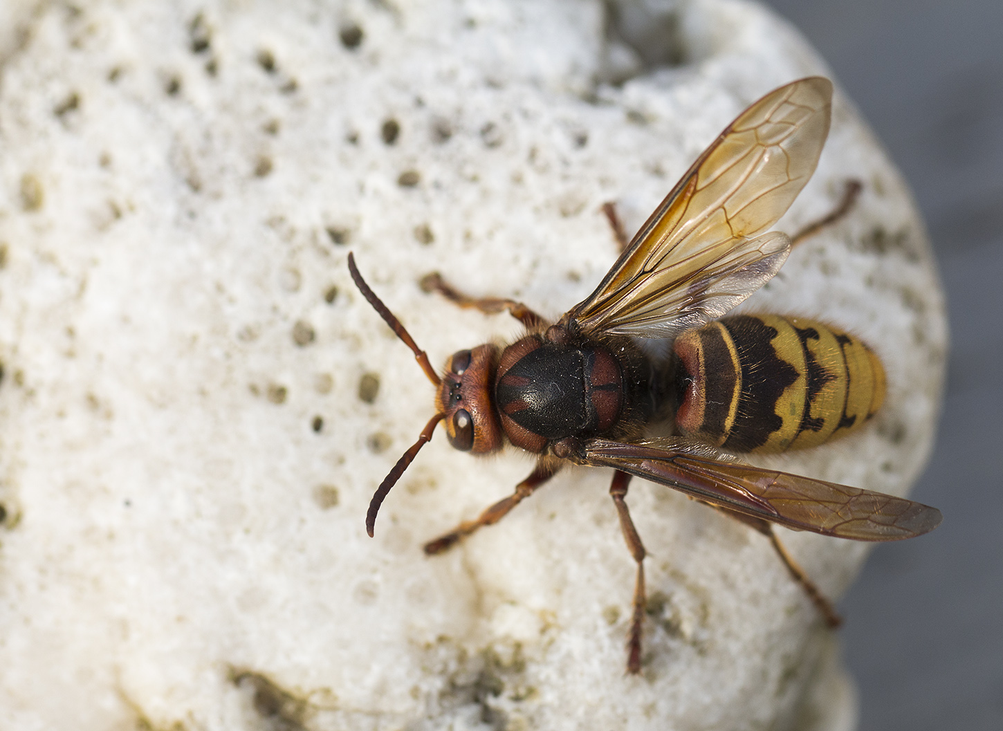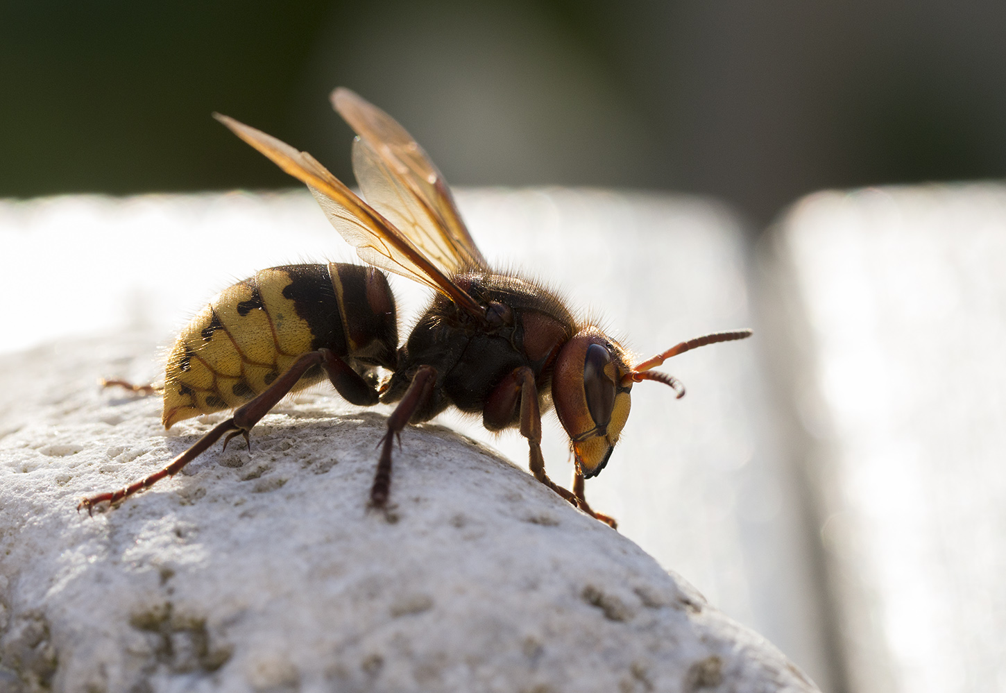 Under morgonen idag fick vi oväntat besök i trädgården – en bålgetingdrottning! En bjässe på strax över 3 cm och jag erkänner utan omsvep att hjärtat rusade tusen varv och att jag ryggade blixtsnabbt tillbaka när den rörde sig och följde mig med blicken. Det här var faktiskt min första bålgeting i Göteborg och Bohuslän och i Sverige har jag endast sett den några få gånger tidigare men aldrig såhär fint!
