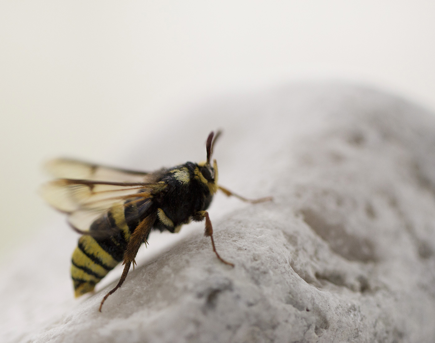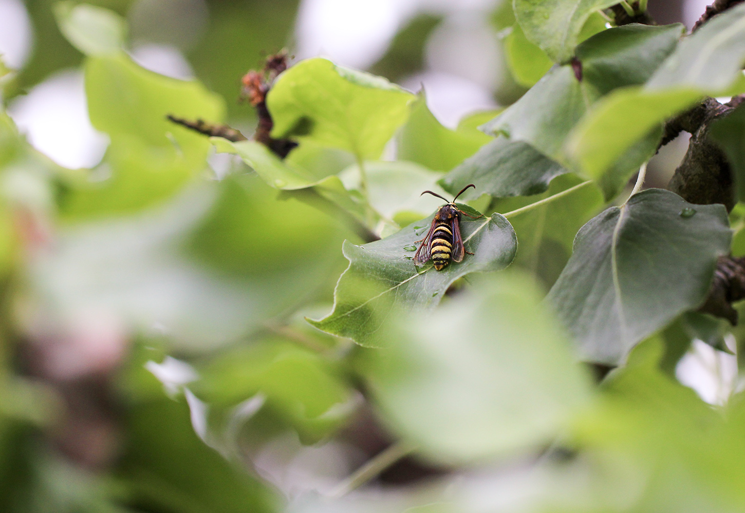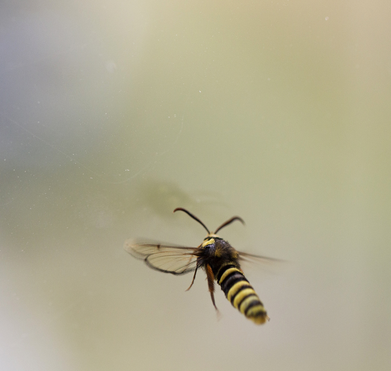 Plötsligt händer det! Vid Sandviks badplats som ligger cirka 150 meter från vårt hus hittade jag idag en poppelglasvinge! En fjärilsart jag aldrig tidigare sett och den inte bara liknar en geting den brummar också ljudligt som en bålgeting.