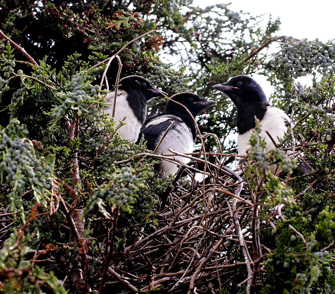 Duger gör det åt de telningarna som gnäller och väsnas mest hela dagen inifrån boet. Bråda dagar är det för mamma och pappa skata. Då och då tar de en välförtjänt paus från föräldraskapet och sitter då stillsamt och rättar till arbetskläderna. Skatan är ju så vardagligt nära oss och så bekant för ögat att vi då och då glömmer hur paradisiskt och bedårande vacker den är!