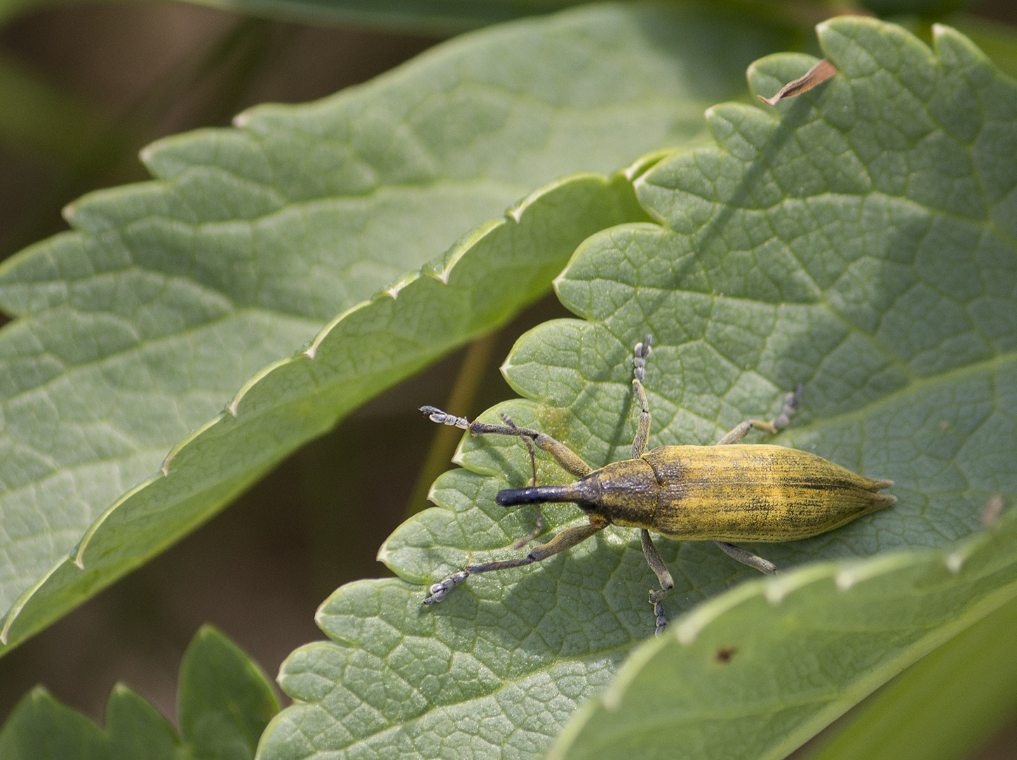 Jag och min äldsta son cyklade igår till Krossholmen för att inventera insekter och på ett strandkvanneblad i ett sankt område hittade vi en stor sumpvivel (liten flagg för osäker bestämning). Om den blir godkänd så är det enligt Artportalen första gången den är rapporterad i Bohuslän och i Göteborgs kommun – häftigt!