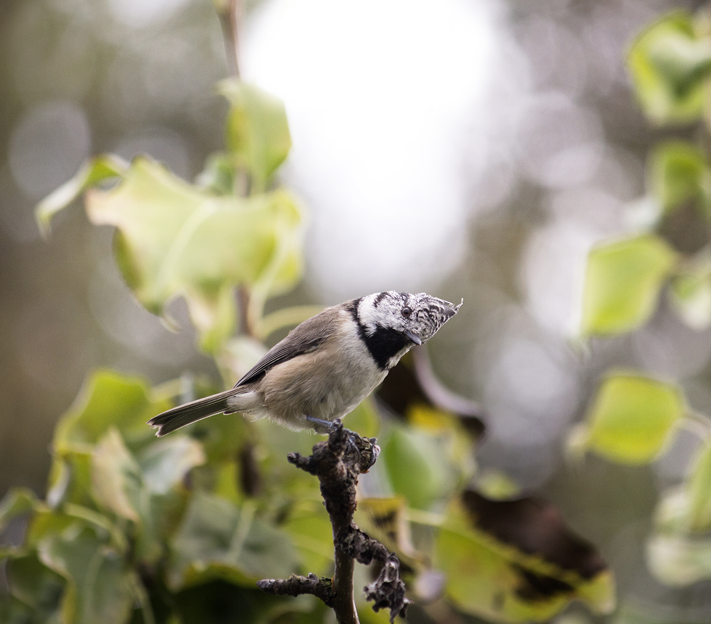 En tofsmes! Den lilla varelsen hör ju hemma i trolska och dunkla John Bauerskogar och inte i ljusa och pråliga frukt- och pilträd vid havet.