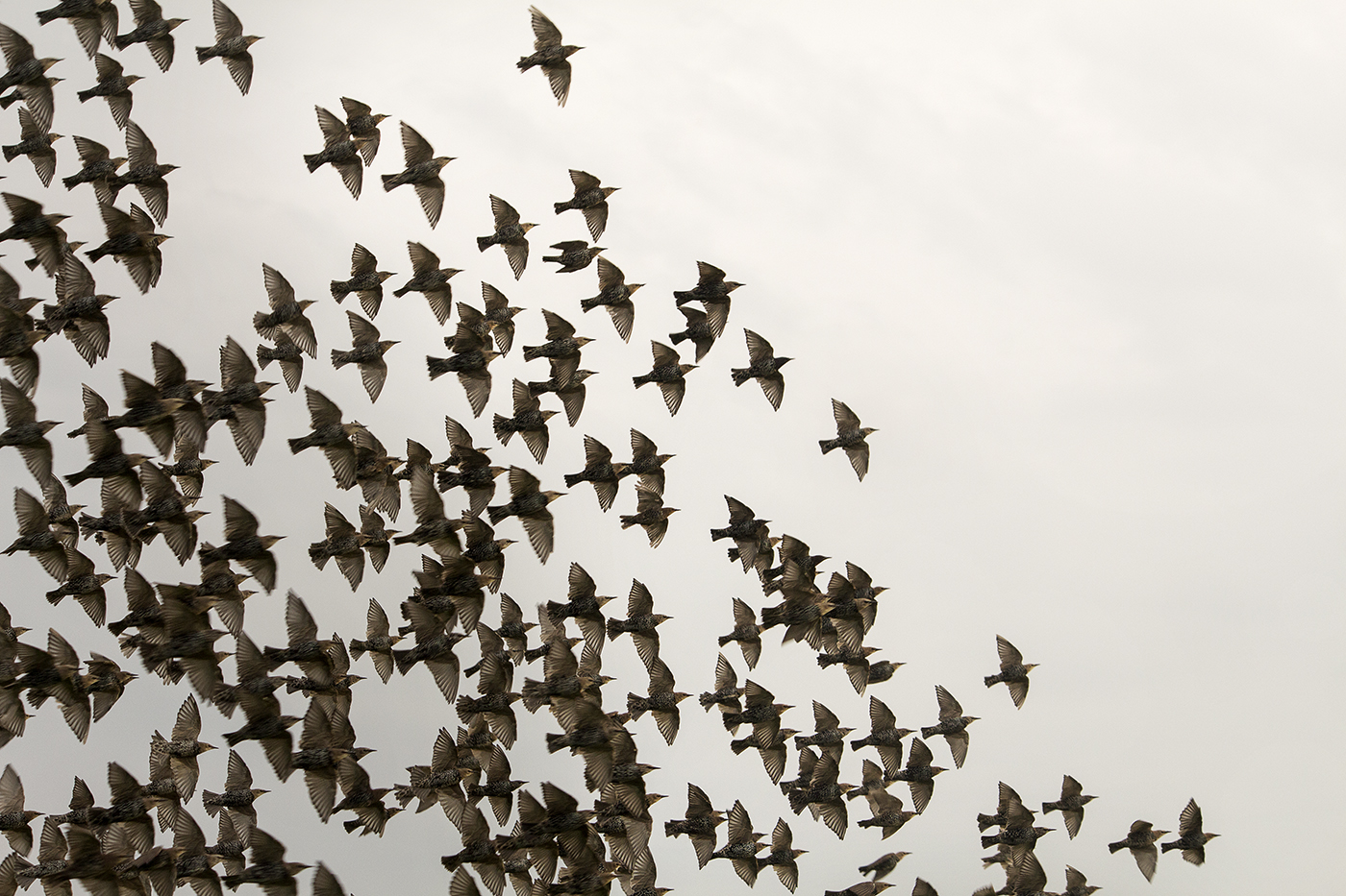 I en större svärm på cirka 300 starar som böljade fram och tillbaka likt ett perfekt synkroniserat fiskstim glimmade en ”cendréstare”, som enkelt kan förväxlas med en ung rosenstare.