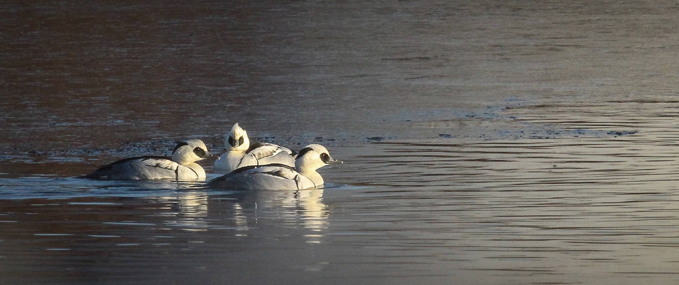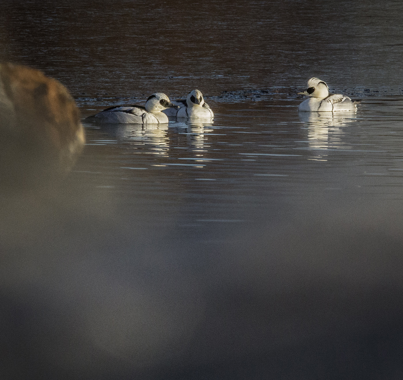 Vacker och stilla decemberdag, några minusgrader och frost på marken. En rördrom solbadade under förmiddagen på Södskärsdammens tunna nattis i Torslandaviken. Och fem salskrakshannar, i samma damm, var hopplöst och djupt förälskade i sina egna spegelbilder. Några järnsparvar busade i krutlagret och vid småbåtshamnen, strax intill viken, hastade ett 20-25-tal snösparvar förbi.