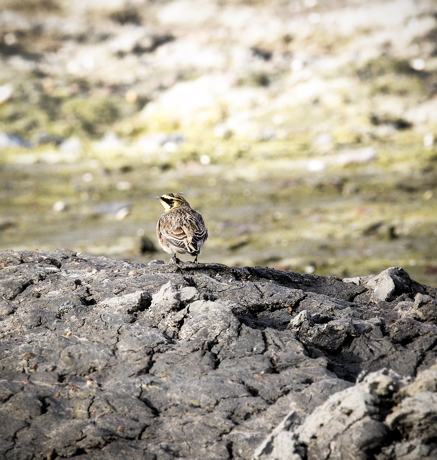 Den gångna natten var vindstilla och temperaturen kröp ned till några minusgrader. Morgonfrosten knastrade således under sulorna när jag promenerade till Torslandaviken. Vid golfbanan flög oväntat en sädesärla förbi, medan två dubbeltrastar och en rödvingetrast födosökte i västra delen av området, och en taltrast satt och sjöng för full hals vid nya fågeltornet. Berglärkorna höll som vanligt till på mudderdammen och de kröp ihop i den bistra gryningsluften.