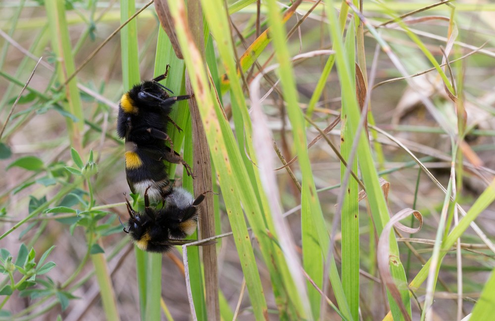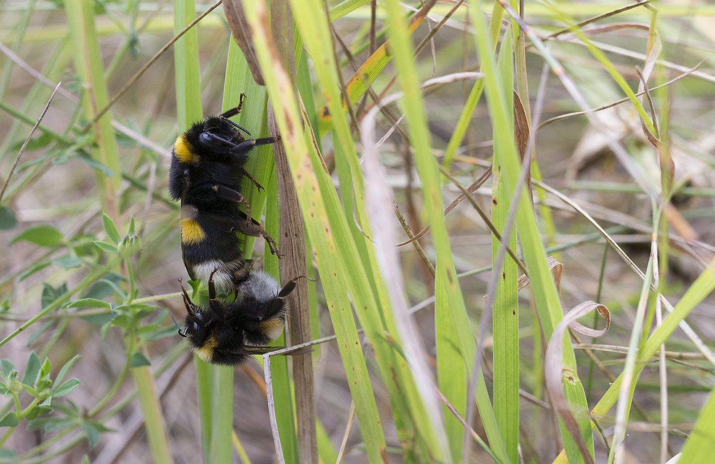 Mörk jordhumla, ovanligt att få se humlor som parar sig.