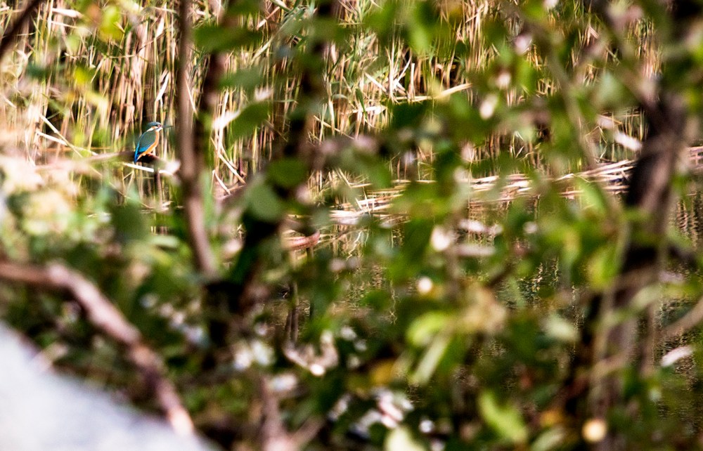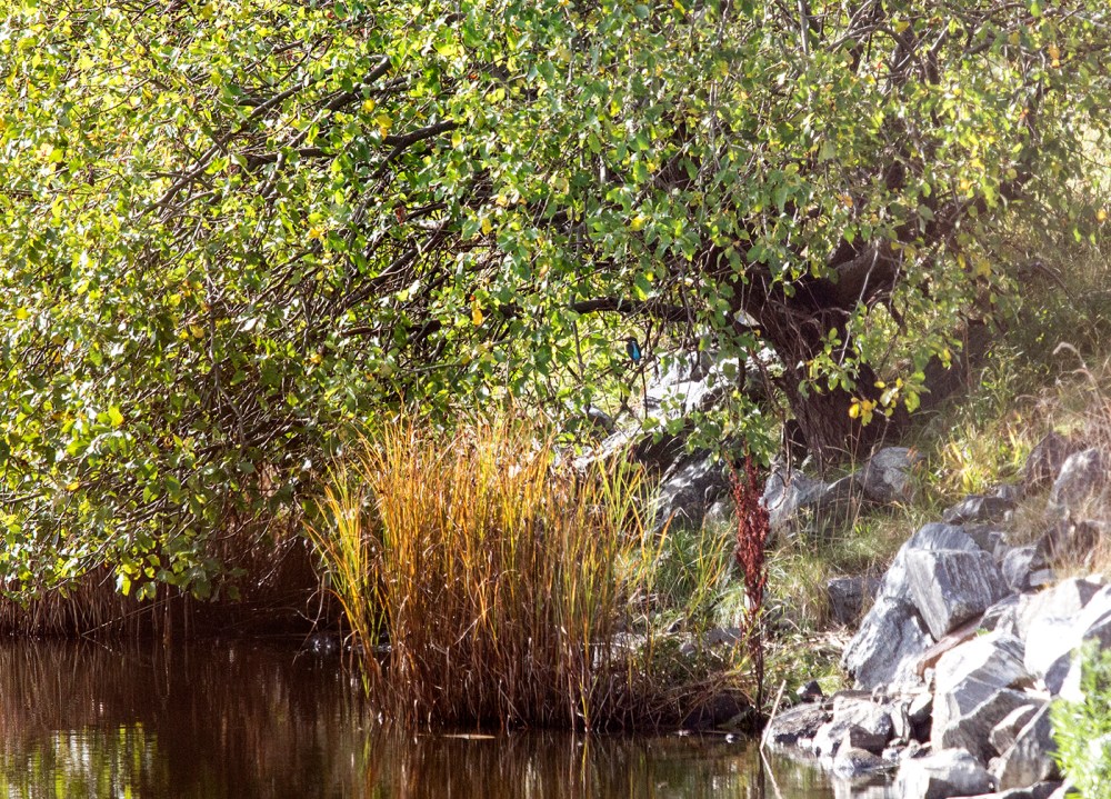 Underbart fredagsväder! Närapå vindstilla, flaggblå himmel och sol. Promenerade till Torslandaviken och hittade två kungsfiskare som stojade högljutt och jagade varandra i Södskärsdammen.