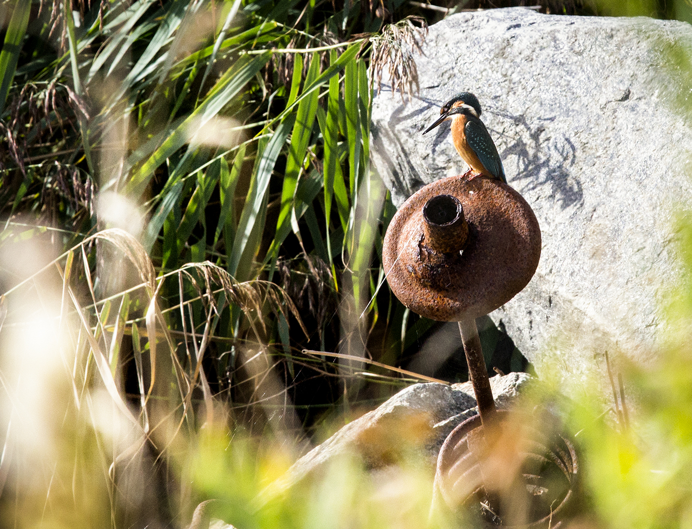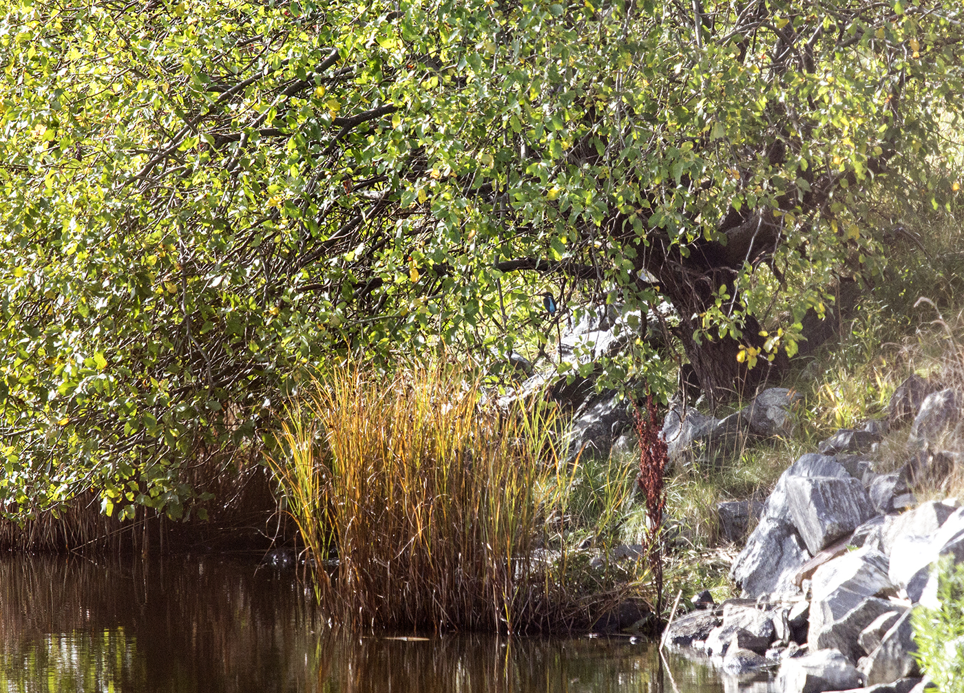 Underbart fredagsväder! Närapå vindstilla, flaggblå himmel och sol. Promenerade till Torslandaviken och hittade två kungsfiskare som stojade högljutt och jagade varandra i Södskärsdammen.