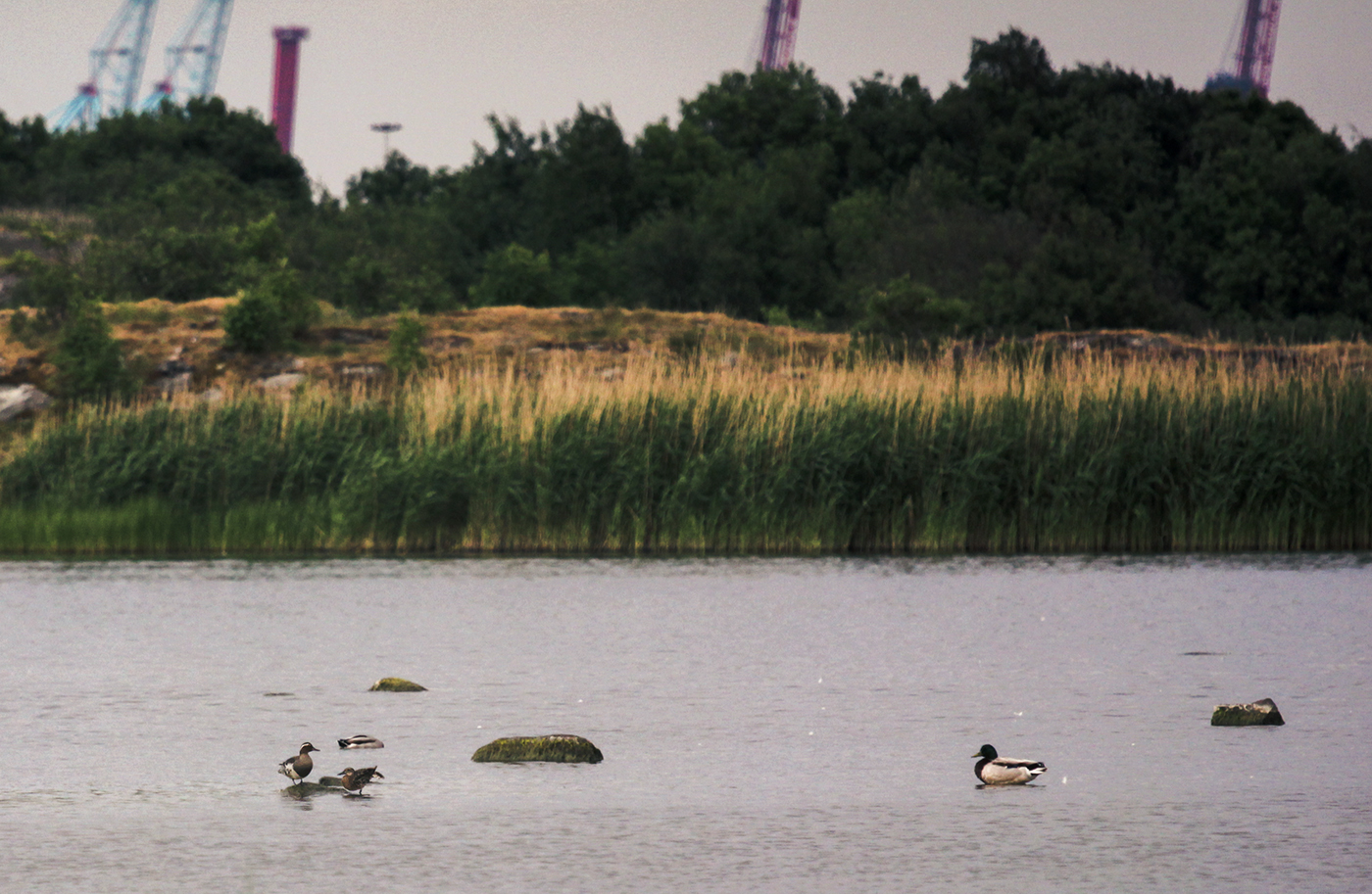 Under kvällen cyklade jag återigen till Torslandaviken och då befann sig 4 stycken årtor, två hannar och två honor, i området.