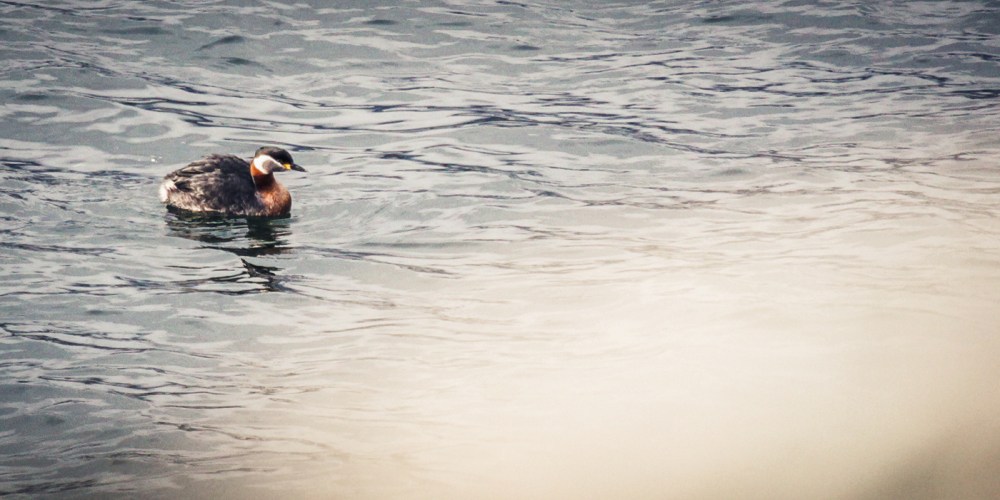 Framemot eftermiddagen och tidiga kvällen besökte jag Nötö och Långholmen. Och där i Långholmssundet låg dagens överraskning – en gråhakedopping i allra finaste elegans och klädsel!
