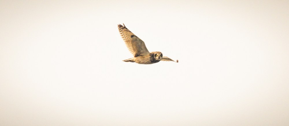 En stund senare vid krutlagret trampade jag närapå, nja trampade är väl ett överdrivet påstående, men en förtjusande grann jorduggla lyfte från gräs- och jordvallen strax intill lagret.