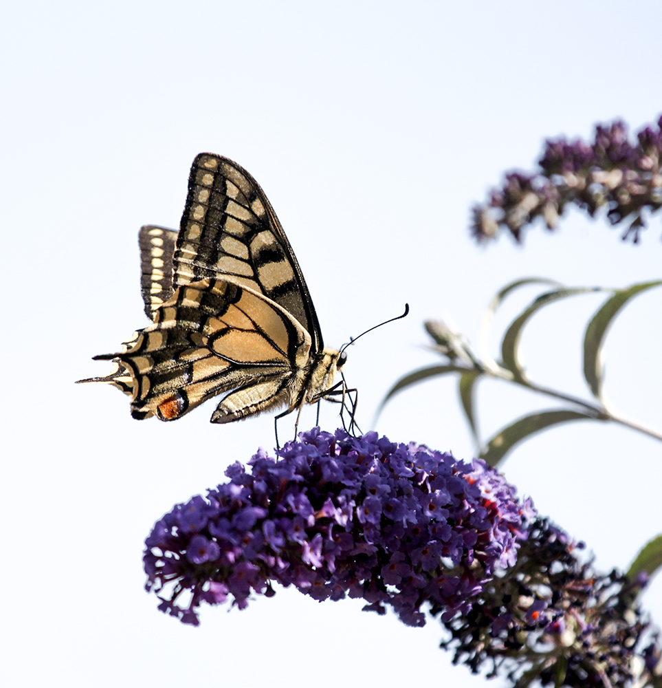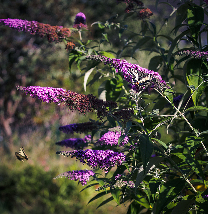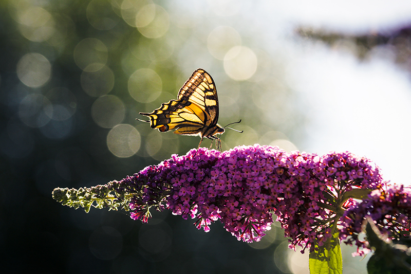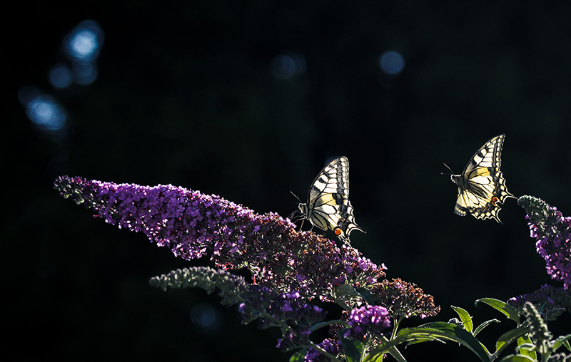Ja, juli 2018 ser alltså ut att bli den varmaste på 262 år och till följd av hettan blommar mina buddlejor tidigare i år och deras praktfullhet lockar till sig yrfän av allehanda slag. Bland annat har det sen en tid tillbaka uppehållit sig 4 stycken makaonfjärilar på buddlejorna. Flera gånger om dagen när de råkar befinna sig litet för nära varandra så inleds akrobatiska luftstrider som kan pågå i flera minuter tills en av kombattanterna så småningom tar mark och slår ihop sina vingar och därmed signalerar att striden är över för den här gången.