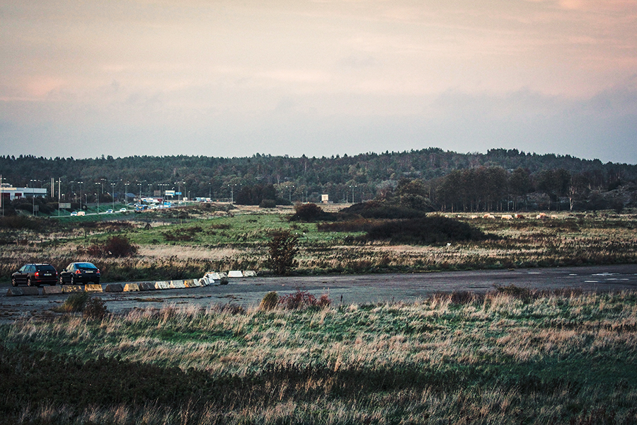 Cyklade till Arendalsudden som ligger i sydöstra delen av Torslandaviken. Gryningshimlen var som hämtad ur filmen Tjuren Ferdinand. När jag kom fram till udden fick min cykel – en korkek stod ju inte att finna som den kunde luta sig behagligt emot- inta en cool pose på en grå klippa.