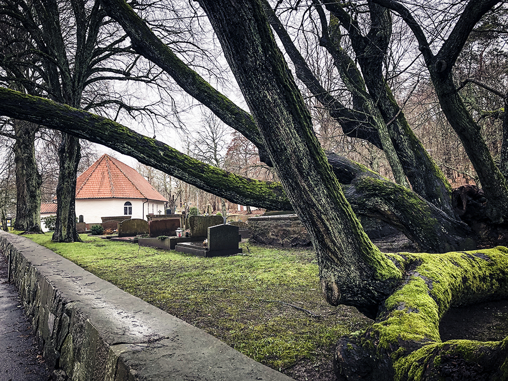 I bakgrunden Gunilla Bandolins konstverk ”Svanbon”. Konstverket består av grenar och sly som har flätats samman av bland annat studenter från Valands konsthögskola.