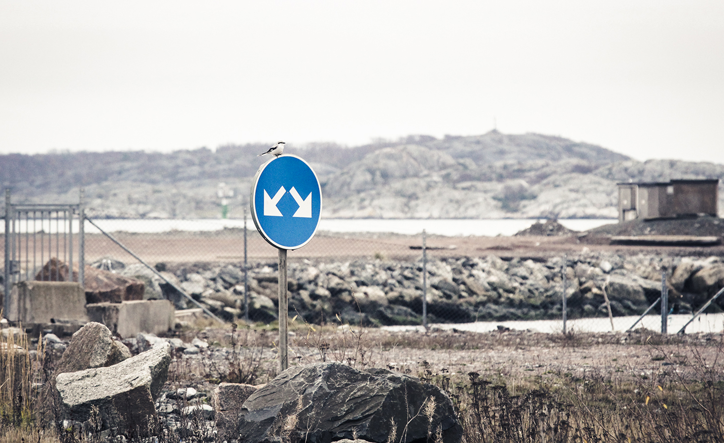 Cyklade till Torslandaviken i gryningen. Landskapet flög förbi. Luften var mättad av november. Havet stilla med spänd grå blick. En adult smålom fiskade vid Risholmsudden och på en vägskylts runda topp satt en varfågel och spejade.