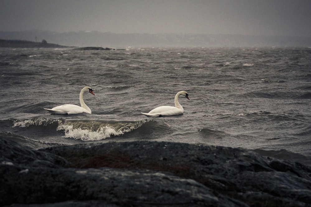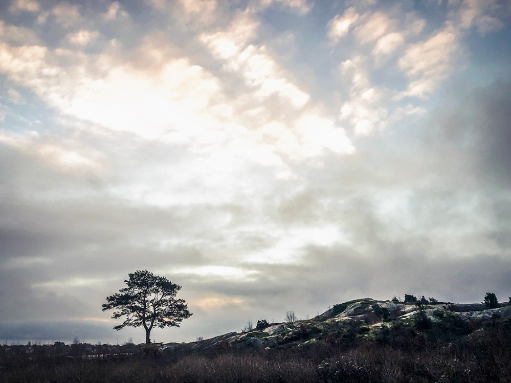 Eftermiddagshimlen är grå, ljusnar i blått när jag når fram till udden. Det blåser friskt och det är söndag och det är februari och det borde ligga snö på marken. Snö till vårdagjämningen. Det gjorde det förr.