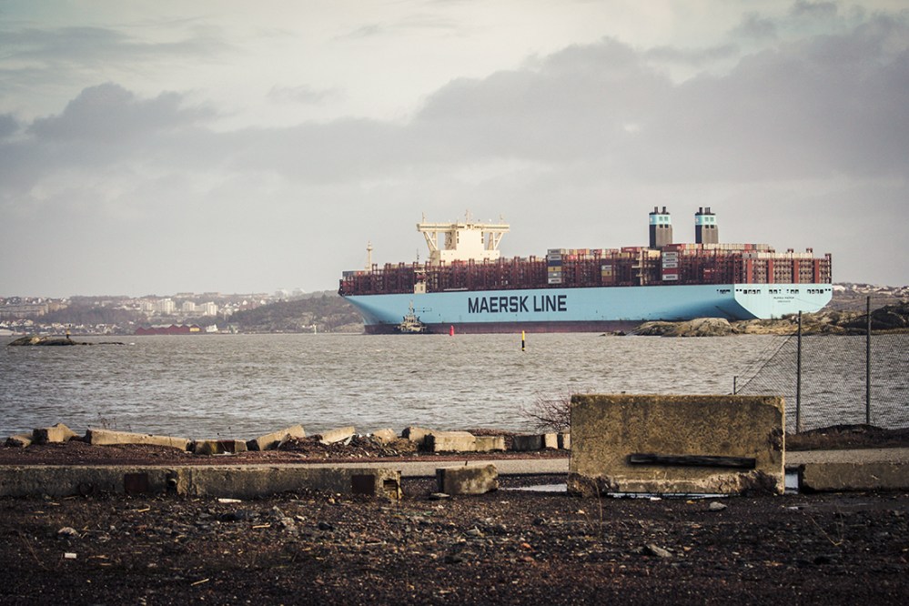 Ett containerfartyg far förbi. Tar sikte på Göteborgs hjärta. Fartyget är världens största containerfartyg och är 400 meter långt och 60 meter bred och 75 meter hög. Om man staplar containrarna som är lastade ombord på varandra så når man stratosfären som börjar ungefär vid 10 kilometers höjd.