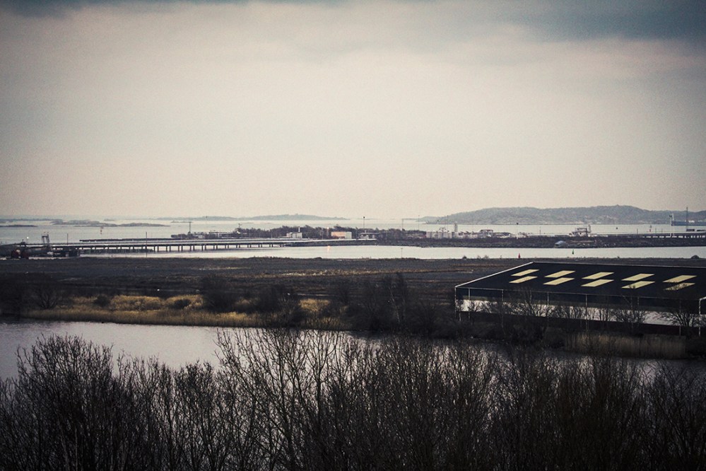 Efter traskat fram och åter i lervälling på mudderdammen i Torslandaviken tar jag lä vid ett båthus vid dammen. Plötsligt sitter den där skyddad mot vinden i en nyponbuske. Vattendropparna skvätter när den ruskar fjäderdräkten samtidigt som det rödbruna huvudet lyser varmt mot busvädrets kalla gråhet.