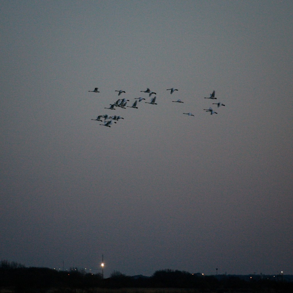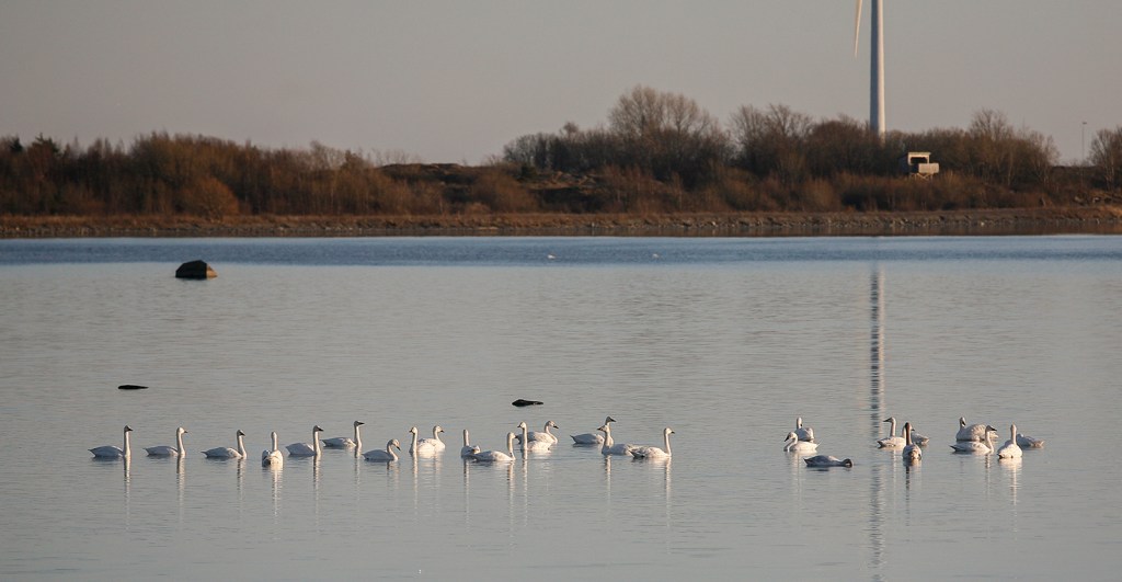 Sol och blå himmel. Frosten och kylan gnistrar i landskapet. Tjugosex ”blockflöjtsmusikanter” (mindre sångsvan) musicerar i Torslandaviken.