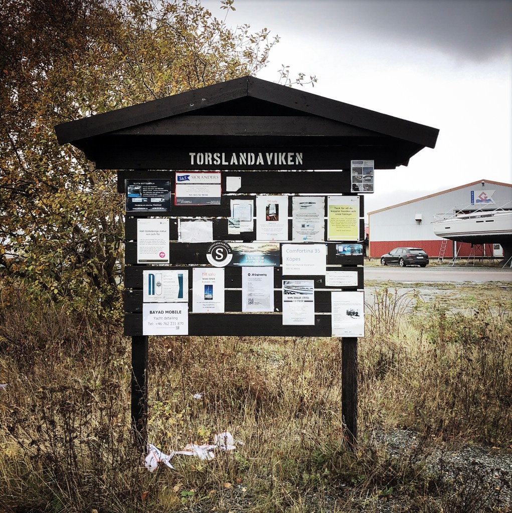 Anslagstavla vid Torslanda lagun (småbåtshamnen) den 23 oktober 2022.
