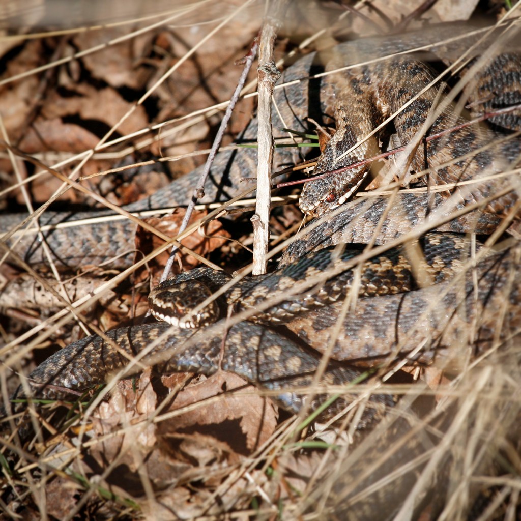 Huggormarna vilar på stenskravel och blekt fjolårsgräs. Råbocken spejar över havsbadskolonins brokiga landskap.