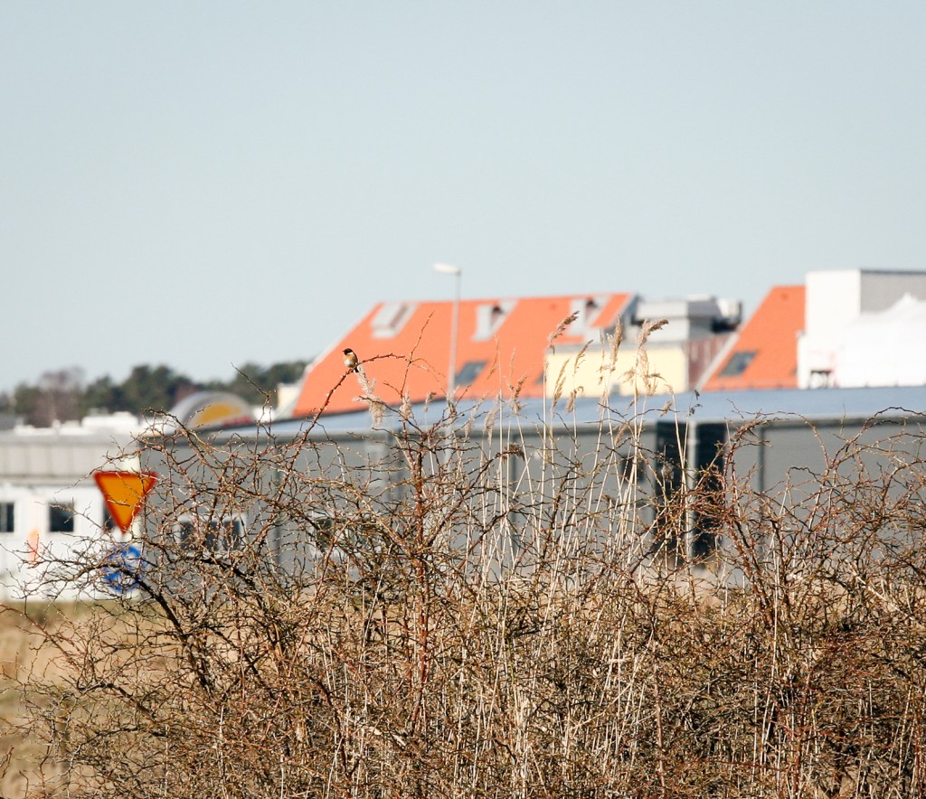 En hane svarthakad buskskvätta av rubicolatyp på Gamla flygfältet, sannolikt anlänt under den gångna natten.