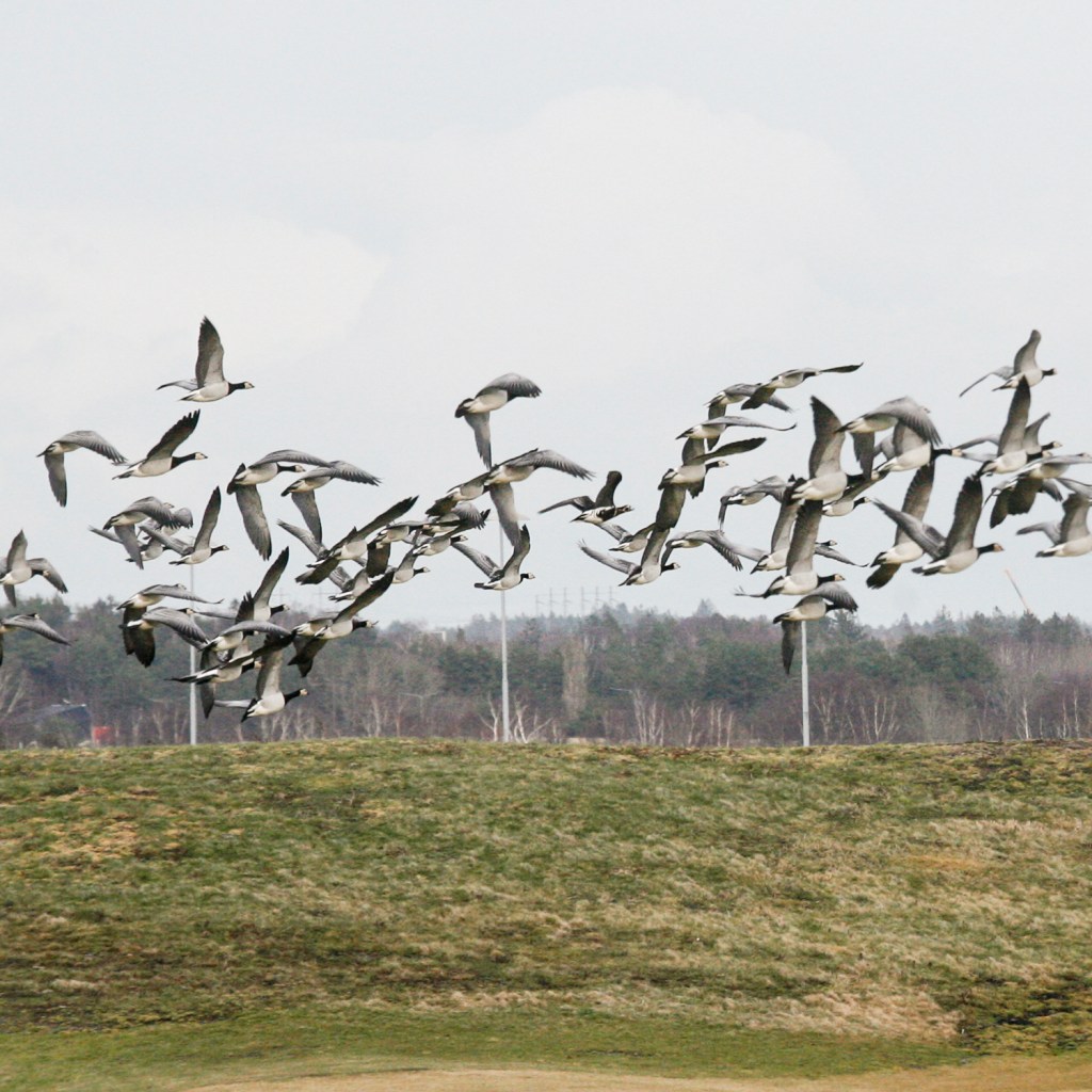 Även säd- och bläsgäss sträckte över viken. Och vitkindade gäss rastade lite varstans i viken, framför allt på Torslanda golfbana.